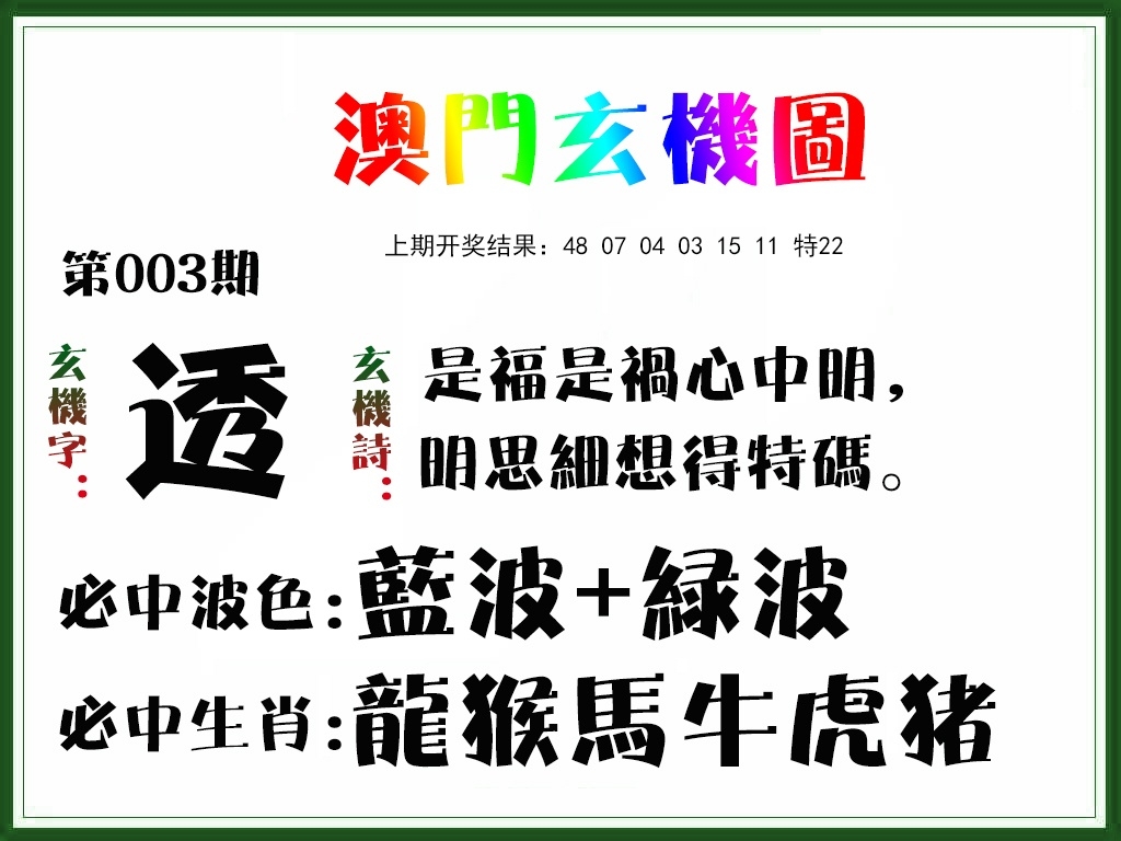 20263期:澳门玄机图